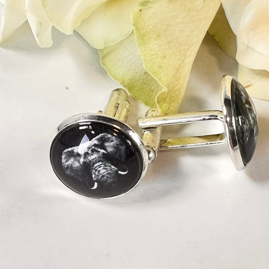 Our range of Ivory gifts celebrate the majestic elephant with a stunning black and white print behind a glass cabochon.