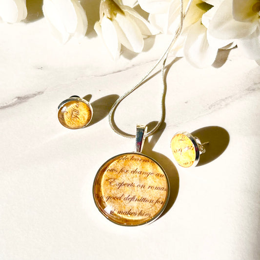 Paper 1st Anniversary Pendant & Earrings Jewellery Set Handmade