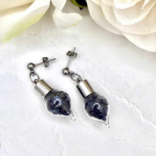 Our collection features sapphire cufflinks, keyrings, earrings, pendants, and complete jewellery sets, each delicately filled with natural raw sapphire fragments and crafted in polished stainless steel or rhodium plate. Presented in a luxury velvet pouch, every piece is ready to gift and cherish.