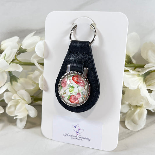 Fruit & Flower 4th Anniversary Leather Key Fob Handmade