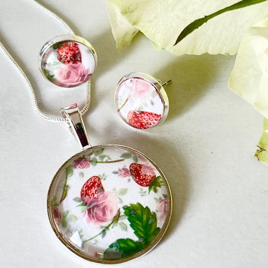Fruit & Flower 4th Anniversary Pendant & Earrings Jewellery Set Handmade