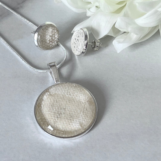 Linen 8th Anniversary Pendant & Earrings Jewellery Set Handmade