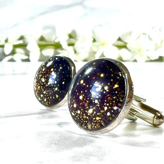 Noir Sparkle Silver Plated Cufflinks Handmade