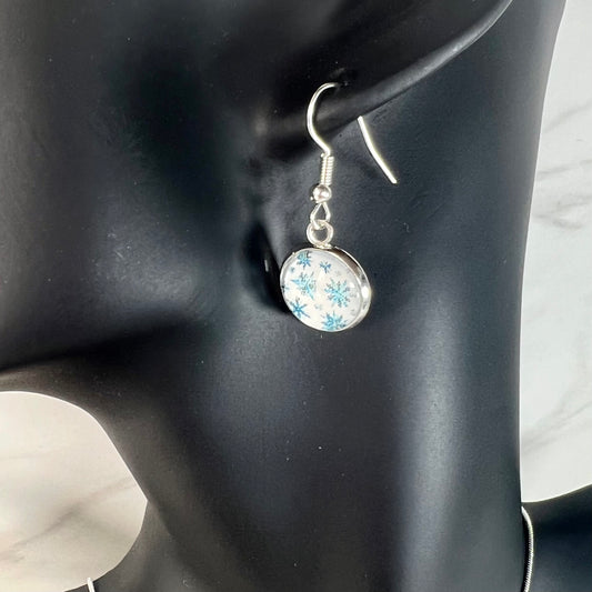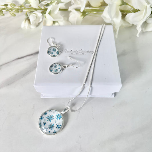 Snowflake Pendant & Drop Earrings Jewellery Set Handmade