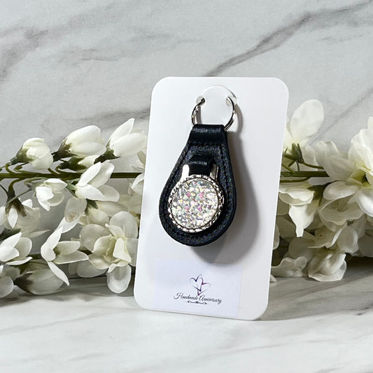 Crystal 15th Anniversary Leather Key Fob Handmade