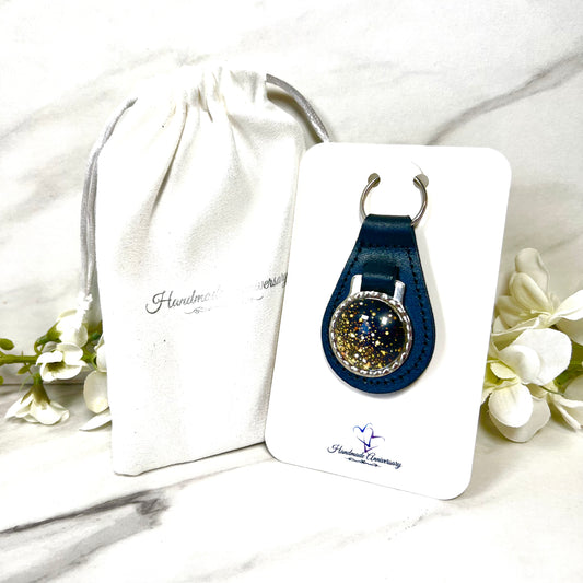 Noir Sparkle Cufflinks & Leather Key Fob Gift Set Handmade
