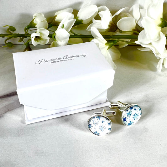 Snowflake Cufflinks and Keyring Gift Set Handmade